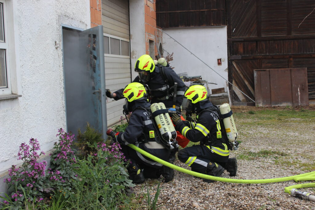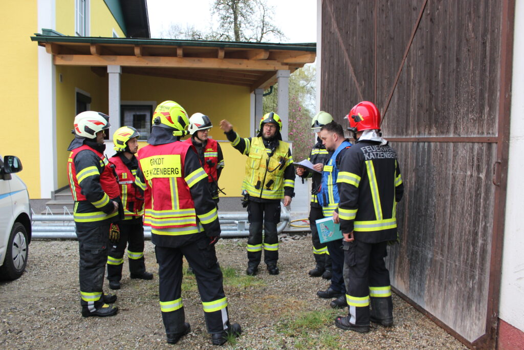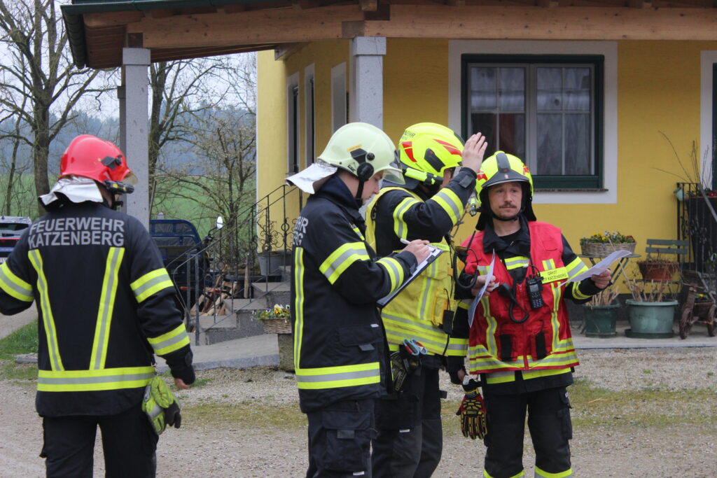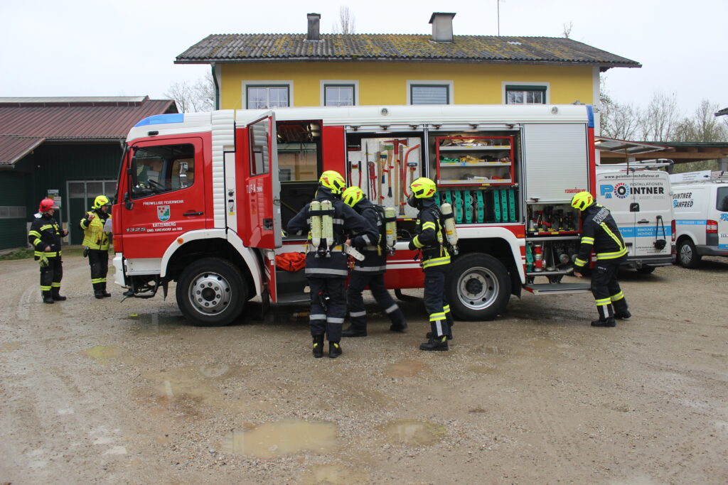 Die FF Katzenberg übernahm die Einsatzleitung, stellte einen Atemschutztrupp und führte gemeinsam mit der FF Kirchdorf einen Außenangriff durch um eine weitere Ausbreitung des Feuers zu verhindern.
