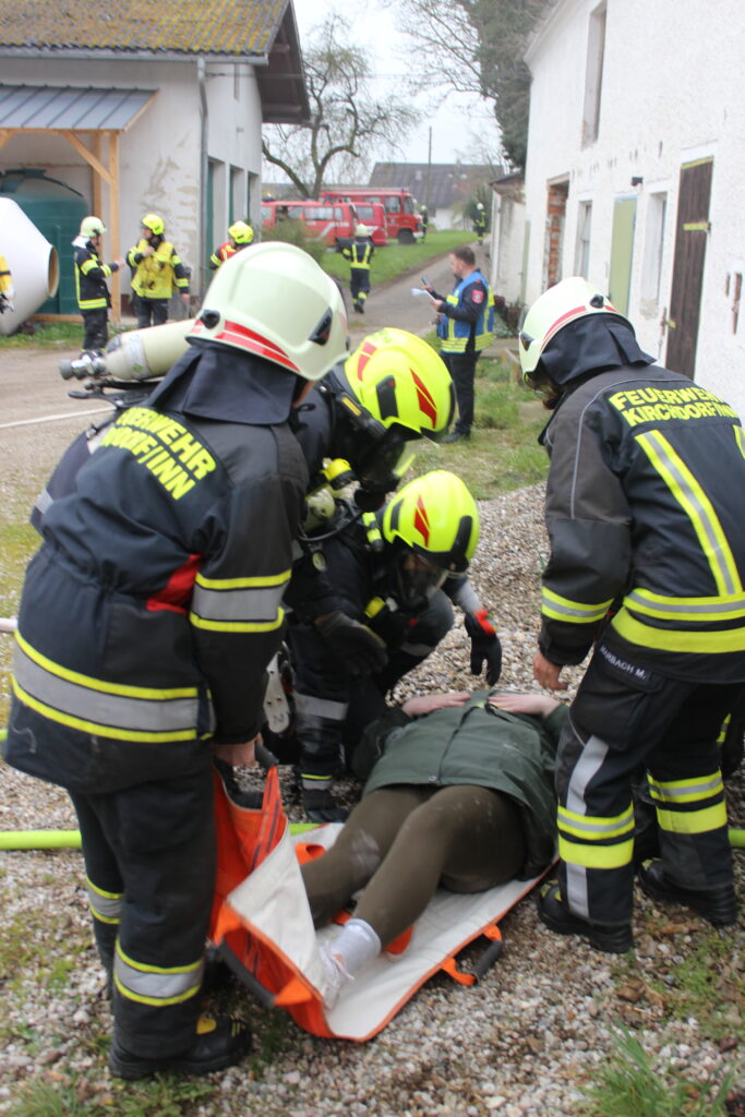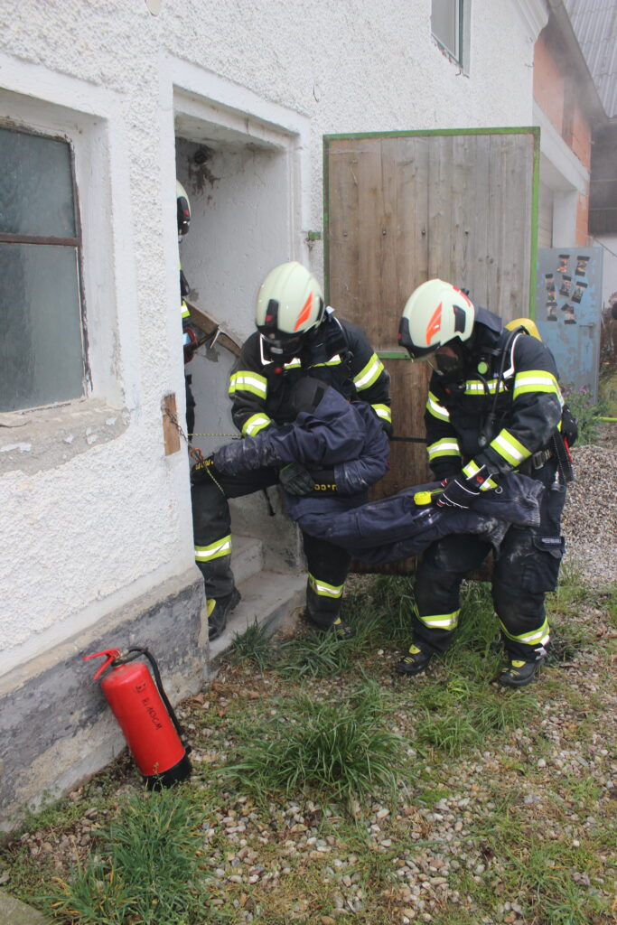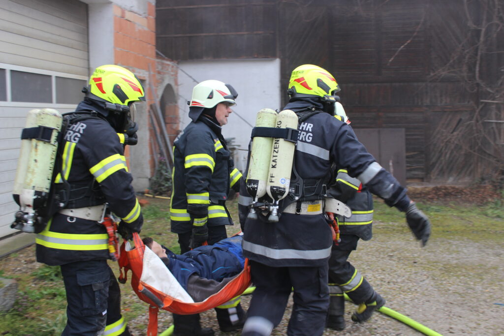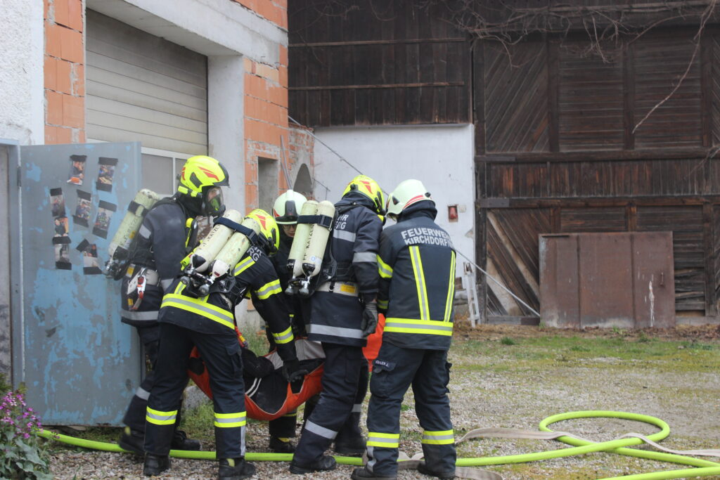 Ein Atemschutztrupp der FF Katzenberg konnte drei Personen aus dem Partyraum retten und sicher aus dem Gefahrenbereich bringen. Der Vater, der zuvor selbst Löschversuche unternommen hatte und sich dabei in die Gefahrenzone begab, wurde vom Atemschutztrupp der FF Kirchdorf am Inn rasch lokalisiert und ebenfalls sicher geborgen.