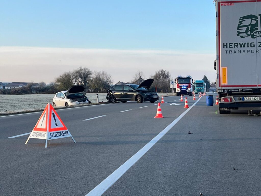 Rund 100 Meter von der eigentlichen Unfallstelle entfernt ereignete sich ein Folgeunfall, nachdem ein nachkommendes Fahrzeug die plötzlich entstandene Gefahrensituation zu spät erkannt hatte.